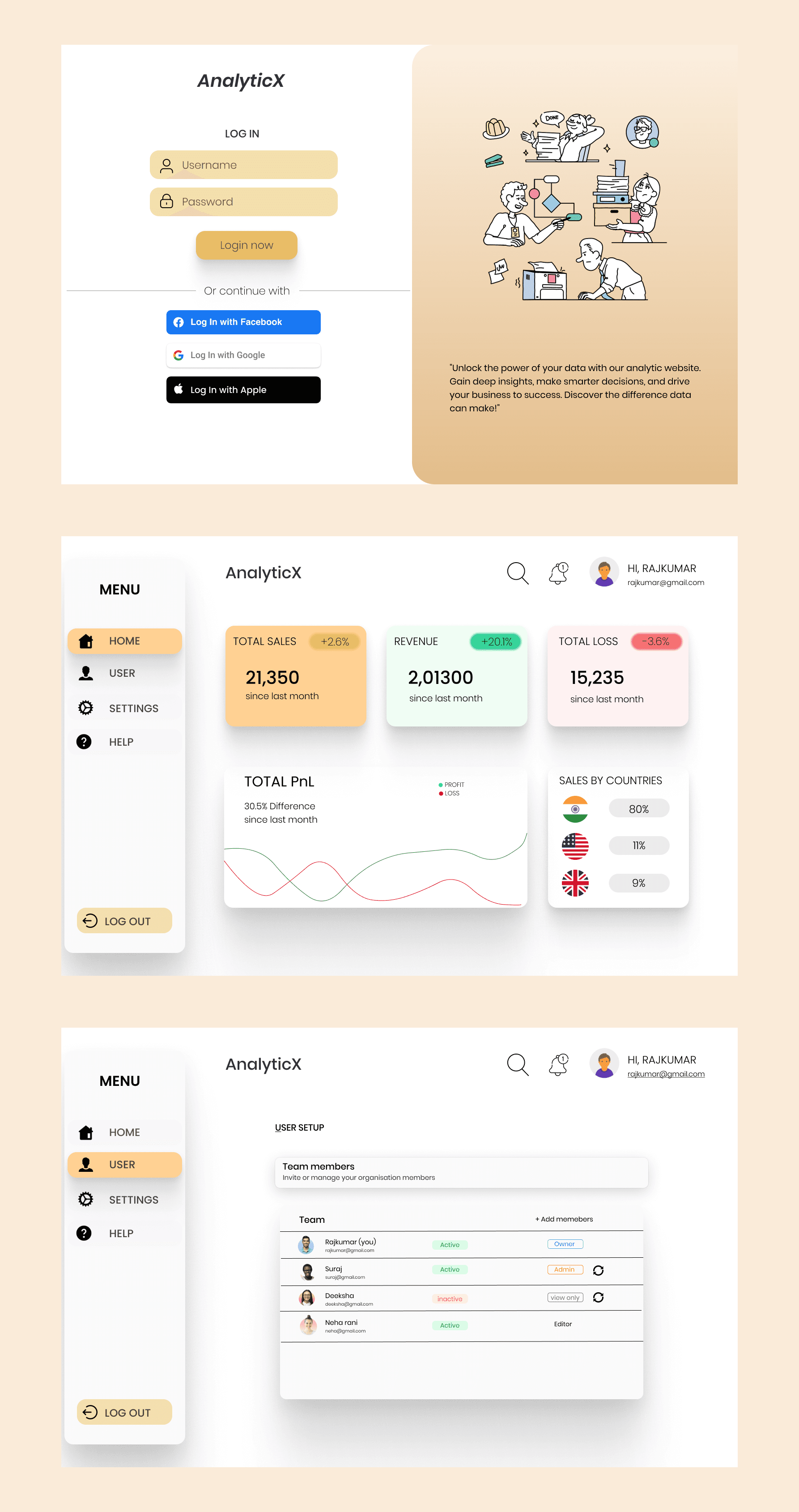 To define the dashboard flow, I reviewed popular tools like Notion, Google Analytics, and Linear. I also spoke with a few startup founders and marketers to understand what they use dashboards for. Most wanted: